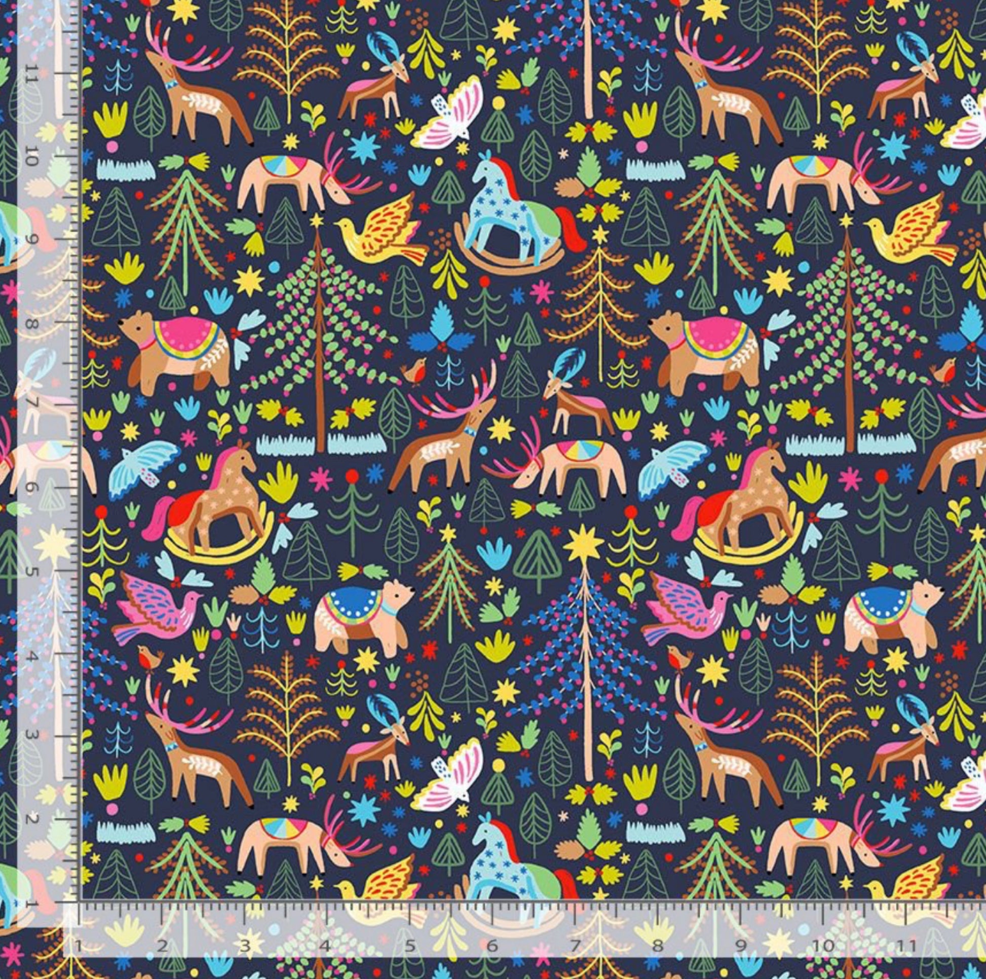 Blitzened - from the Blitzened Collection by Dear Stella Fabrics - New Christmas fabric with rocking horses, doves, Christmas trees, and bears. - D2743 - Multi - 100% cotton, digitally printed.