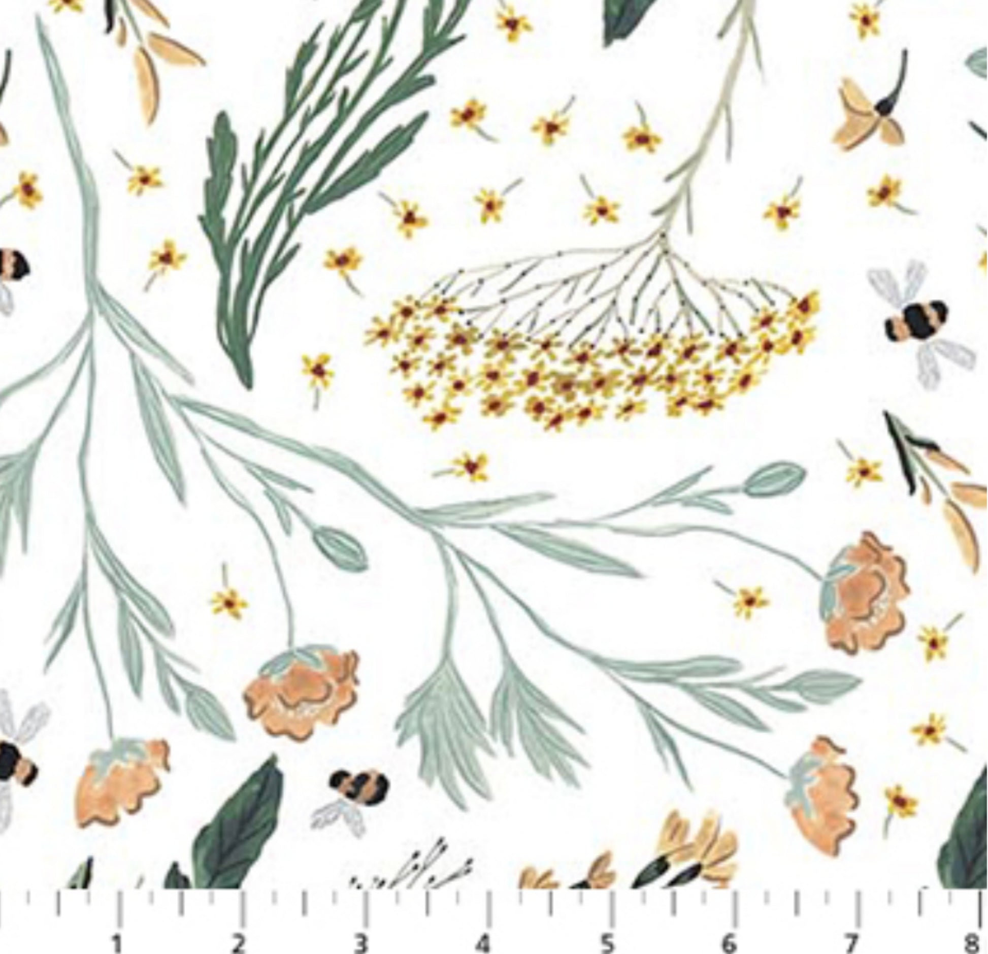 Botanical - in white, from the Green World Collection by Sara Boccaccini for Figo Fabrics. - RC90885-10. This collection is crafted from recycled cotton fabric, digitally printed. We also have additional fabrics from this collection in stock.