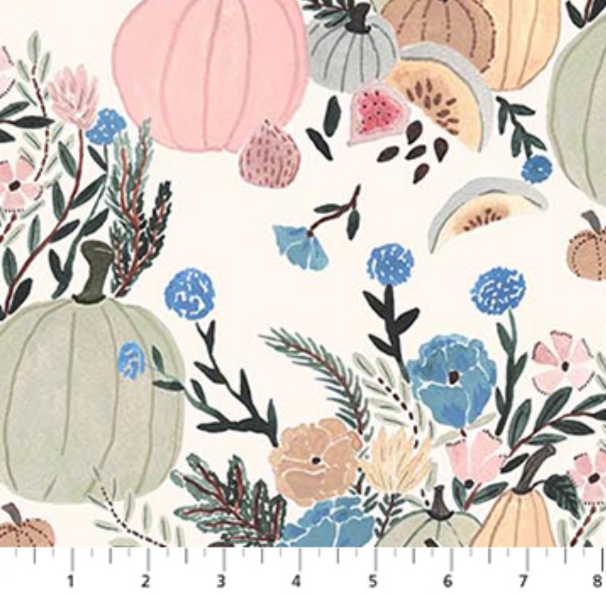 Cream Pumpkins- in cream, from the Autumn Forage Collection by Boccaccini Meadows for Figo Fabrics. - 90849-11. 100% cotton fabric, digitally printed. We also have additional fabrics from this collection in stock.