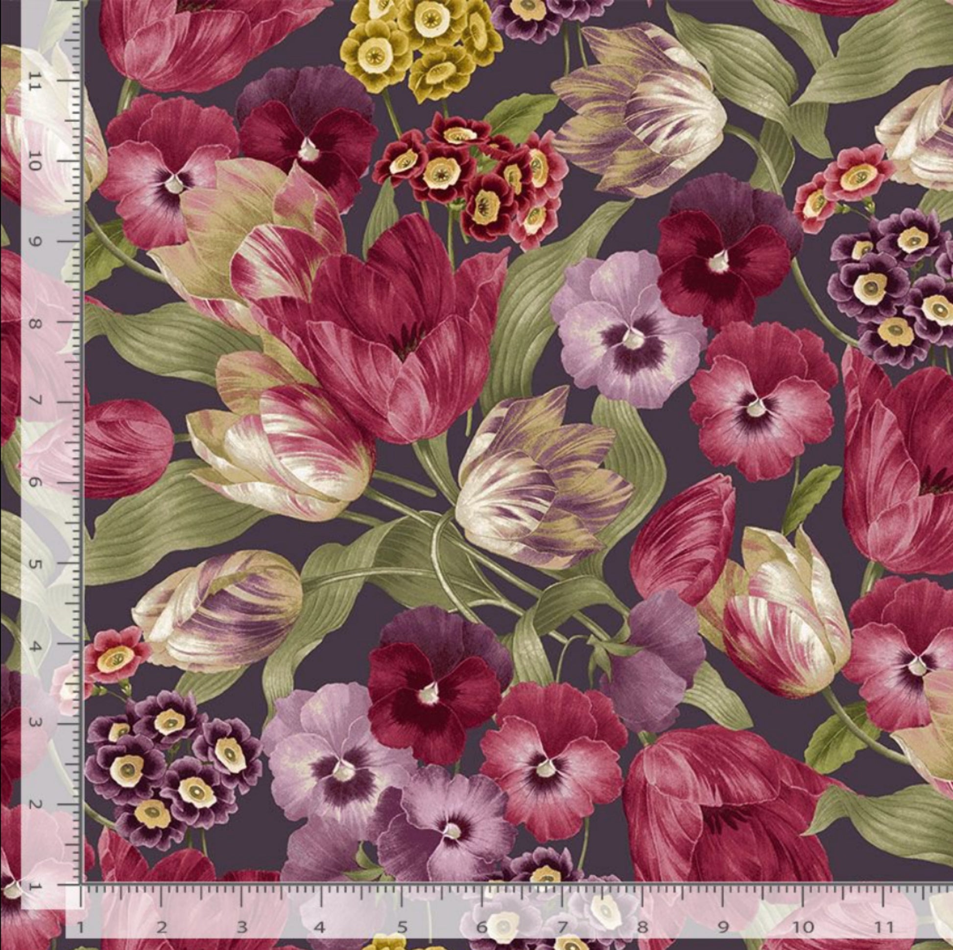 Fleur - Packed Pansies and Tulips - Laurel Collection - TT Fabrics - CD1903