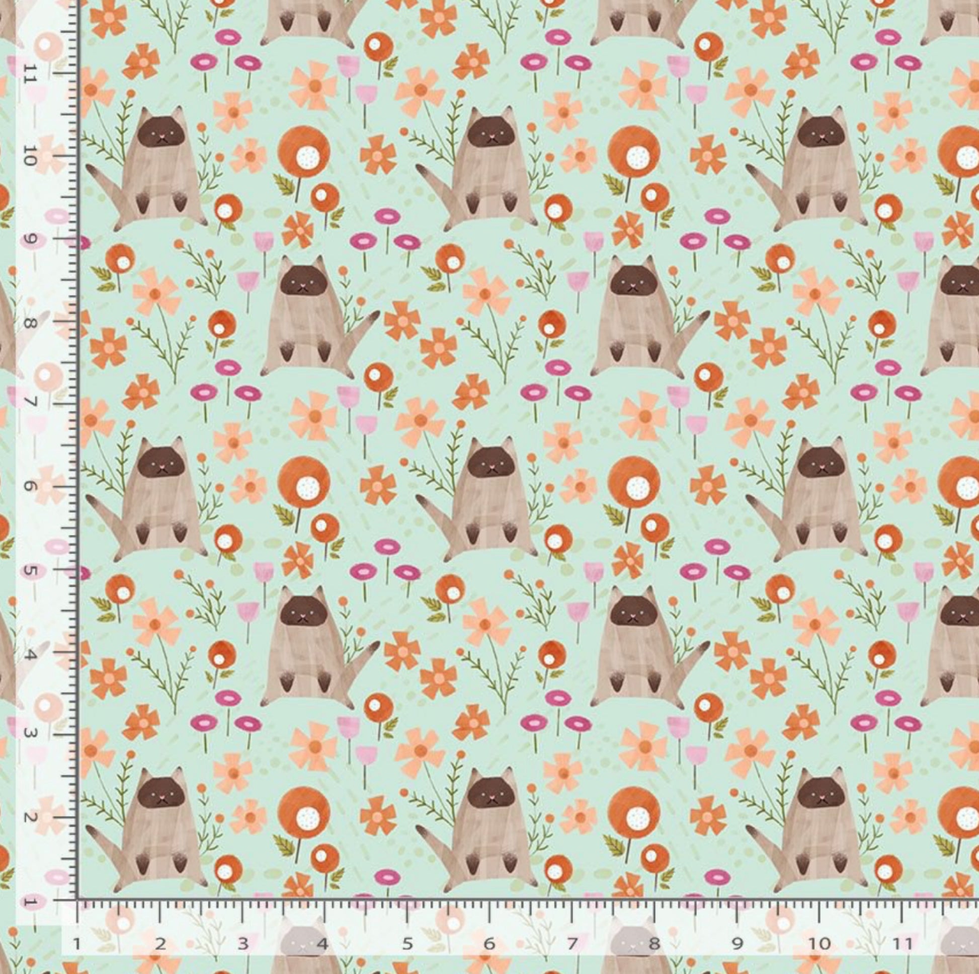 Lazy Kittens - Lazy Sunday Collection by Pammie Jane for Dear Stella Fabrics - Cats and flowers on a mint green background - DPJ2893 - FREEZE - 100% cotton, digitally printed.