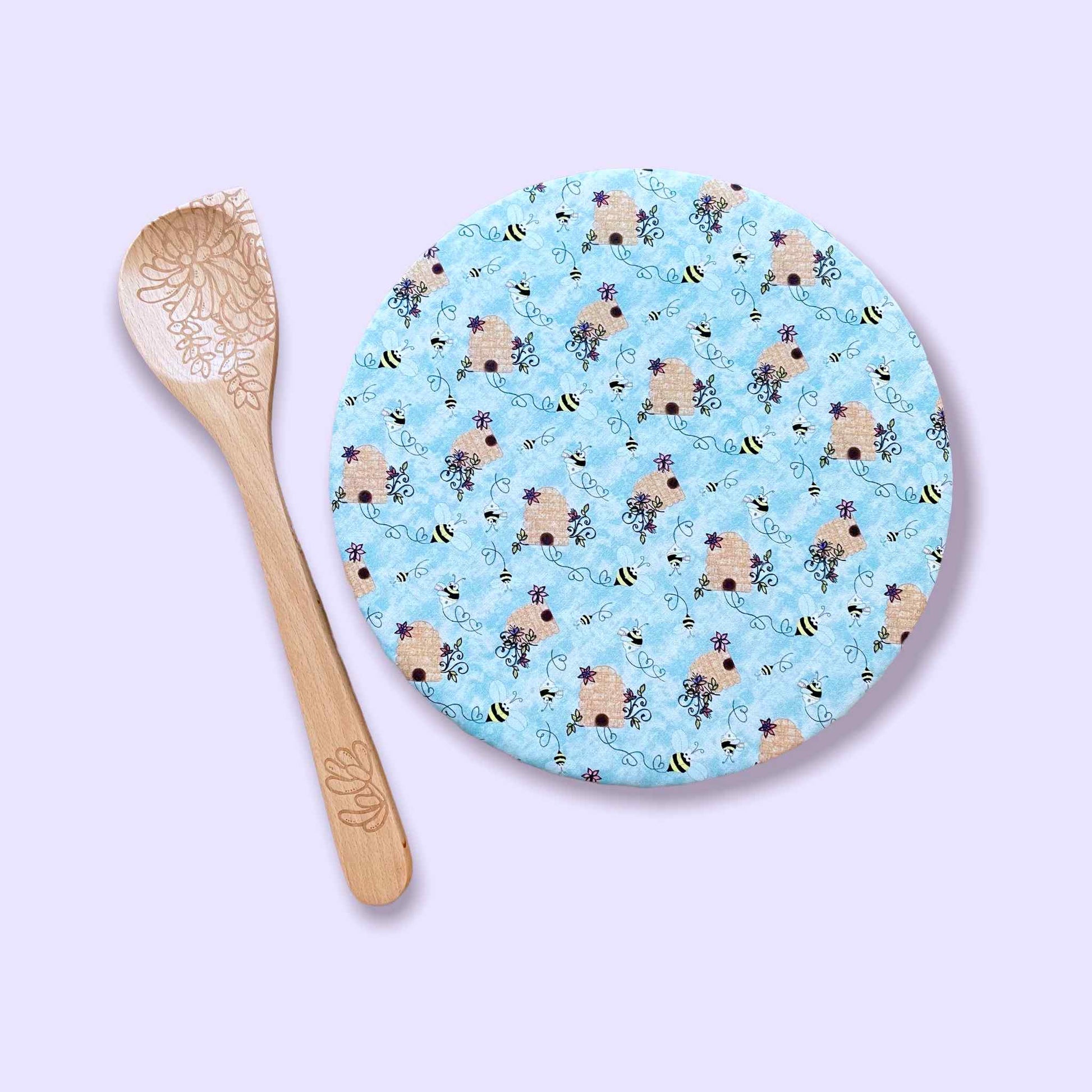 Featuring our new "Bee Boppin" Bees and Beehive fabric from QT Fabrics. Our reversible Stand Mixer Bowl Covers are the perfect solution for keeping your Stand Mixer Bowl dust-free between use and allows you to store a few paddles in your bowl as well, unseen and ready for use. Our Bowl Covers can be used on any medium to large bowl or pie plate! Ditch the plastic wrap, zero waste, our bowl covers are reusable.