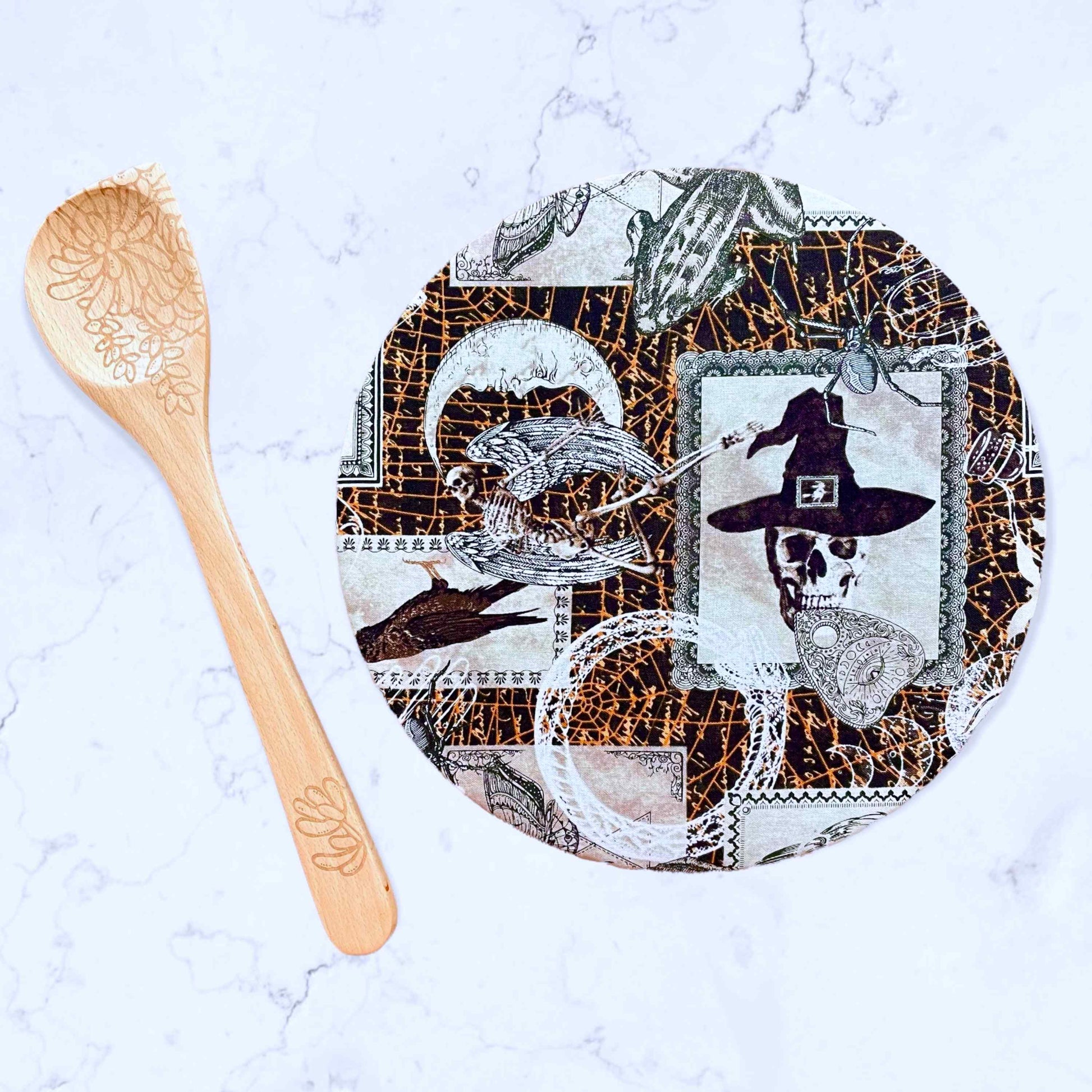 Just arrived! Our New Gothic Decor Mixer Bowl Cover. Our reversible Stand Mixer Bowl Covers are the perfect solution for keeping your Stand Mixer Bowl dust-free between use and allows you to store a few paddles in your bowl as well, unseen and ready for use. Our Bowl Covers can be used on any medium to large bowl or pie plate!