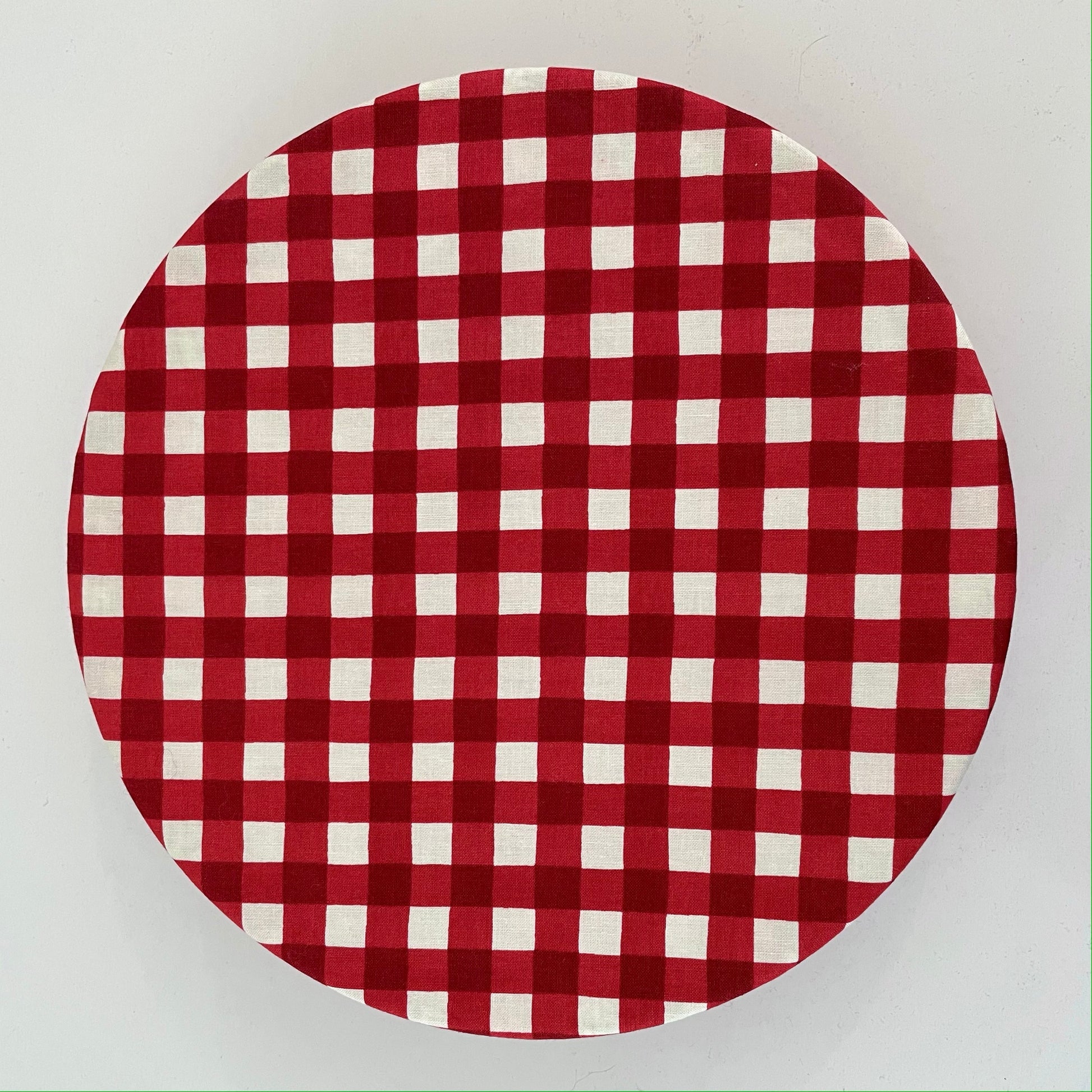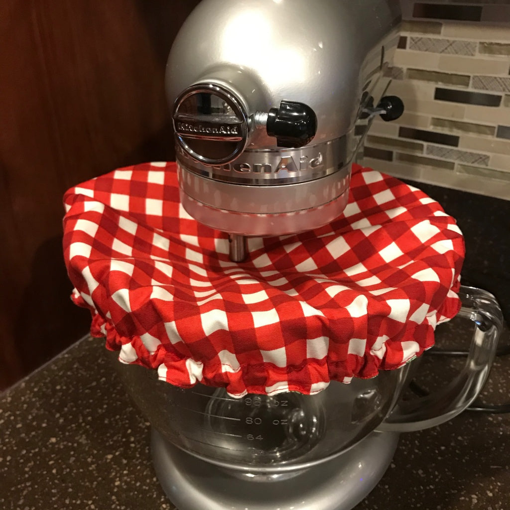 The Reversible Cotton Bowl Covers fit any 4.5 - 6 qt. standard mixer bowls. I received an Artisan mixer last year for Christmas, and it looks beautiful on my counter, but I remembered growing up my grandmother would sew her own bowl covers for her stand mixer and I decided it was just what I needed for mine. This Mixer Bowl Cover features our Red and White Gingham fabric.