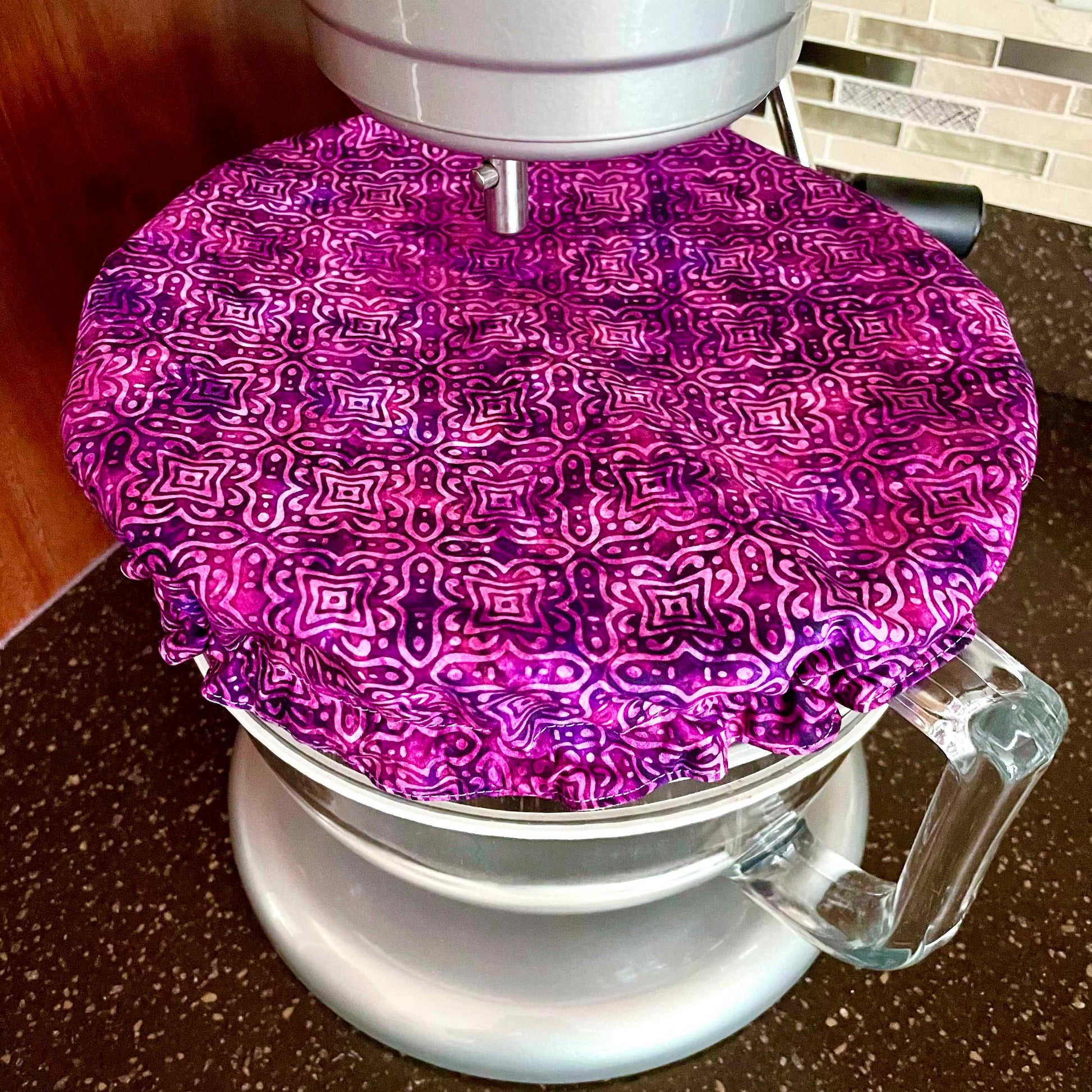 This Stand Mixer Slider Mat features our "Purple Batik"  fabric. Don't forget to order your matching Stand Mixer Bowl Cover, sold separately.
